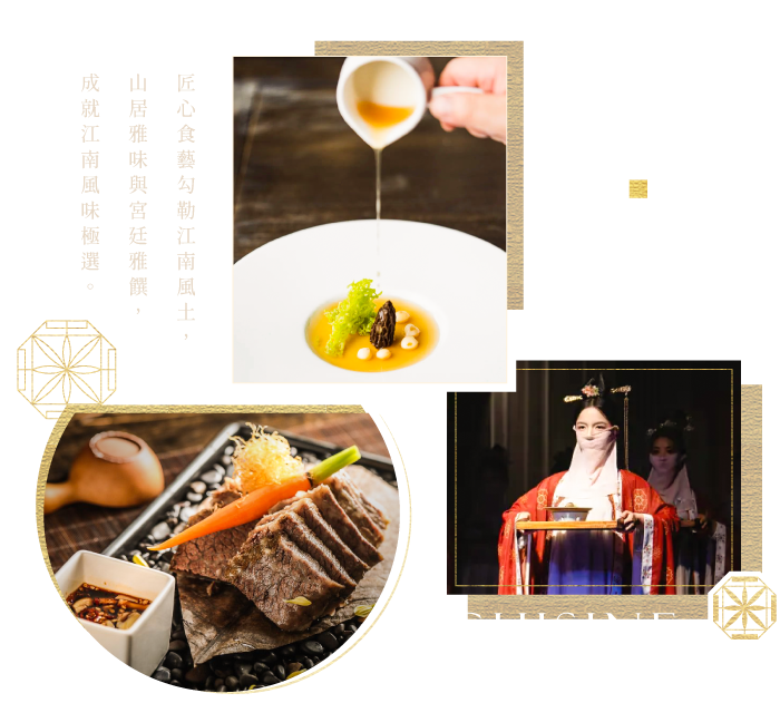 「吳地宮廷御膳文化」,主打經典菜色承襲蘇幫菜精髓,刀工細膩、火候精準,口味清雅卻層次分明。從空間陳設、上菜節奏到菜名設計,都呼應吳文化與宮廷禮序,讓賓客彷彿走入古代王府。