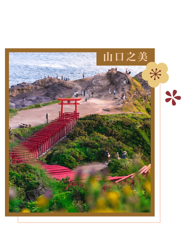 山口美絕景:【A. 元乃隅神社 或 B. 角島大橋 或 C. 秋吉台.秋芳洞.鐘乳石】 ~ 季節療癒系:【A. 白野江植物公園 或 B. 門司港懷舊遊船 或 C. 果物狩.採季節水果】~ 往日情懷浪漫:門司港古跡.門司港火車站