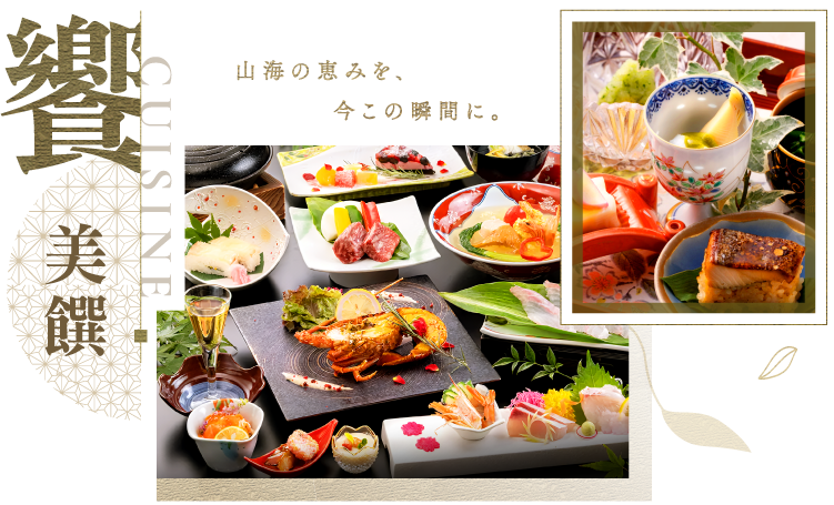 聽著風吹過山川草木聲音,看著窗外春櫻、夏綠、楓紅、雪舞;「款待的心」結合「和韻之美」,今晚,代表溫泉旅館的會席晚宴,就從第一品料理開始上演,邀請您親自細細品宴。