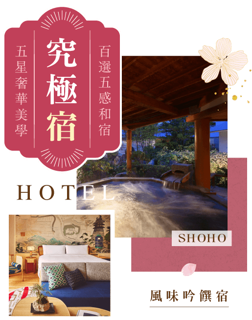 早餐: 飯店內享用早餐 午餐: 季節食堂料理 或 料理長創意御膳 晚餐: 溫泉飯店和御膳會席晚宴