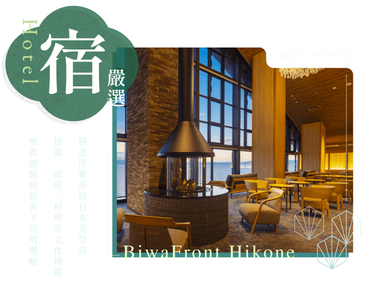 《和之宿》雄琴溫泉:旅宿大多鄰湖而建,入住其間,浸浴泉水邊瞰琵琶湖煙波浩渺,尤其是清晨湖面日出,更是令人動容。