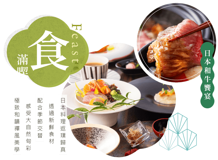 溫泉會席晚宴:聽著庭園潺潺流水,看著春櫻、夏綠、楓紅、雪舞,會席料理懷食禪學,一場五感美學之食藝,等著您用「心」來細細品宴。