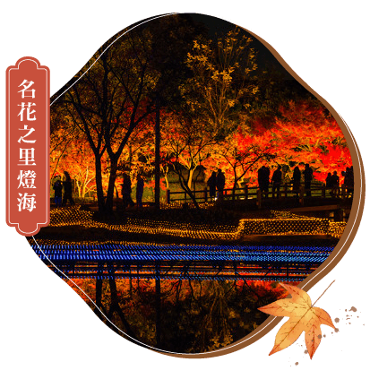 日本第一.名花之里燈海季:火樹銀花與鏡池夜楓LIGHT UP,每年都有不同主題慶典,美麗絢爛光之隧道。(日本最大燈海展)
