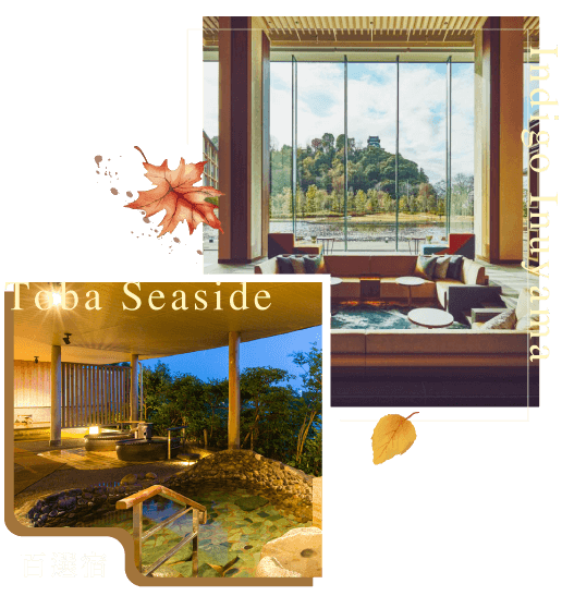 坐落在真珠之海、比鄰英虞灣,是2016-G7伊勢志摩高峰會時,日本安倍前總理住宿的温泉旅館,泉質優異濃稠滑順,美肌首選。庭園露天風呂可邊泡湯邊眺望英虞灣絶美晨昏美景人生一大享受。