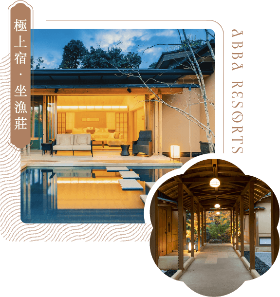 ABBA坐漁荘位於伊豆浮山溫泉鄉內,以日式傳統山屋建築,花藝、竹圍、檜木打造與戶外庭園融為一體的空間藝術。更有頂級Villa,用一室一景,附有露天、室內風呂及可飽覽隨四季更迭的禪意庭園、古木山林等寫意風景,打造與自然共生的文化品味空間。在這裡可享受榮獲世界精品酒店肯定的亞洲最佳廚藝團隊,以當天捕撈直送的新鮮魚貝,搭配各種契作有機農家時蔬等,巧手幻化成日式會席料理、精緻法餐或頂級鐵板燒,增添豐富旅程。