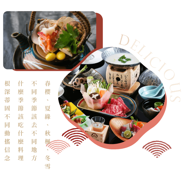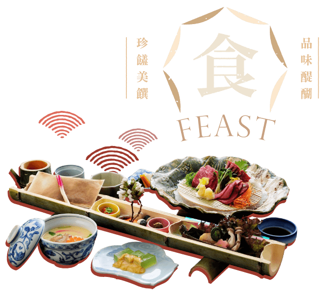 聽著風吹過山川草木聲音,看著窗外春櫻、夏綠、楓紅、雪舞;「款待的心」結合「和韻之美」,今晚,代表溫泉旅館的會席晚宴,就從第一品料理開始上演。