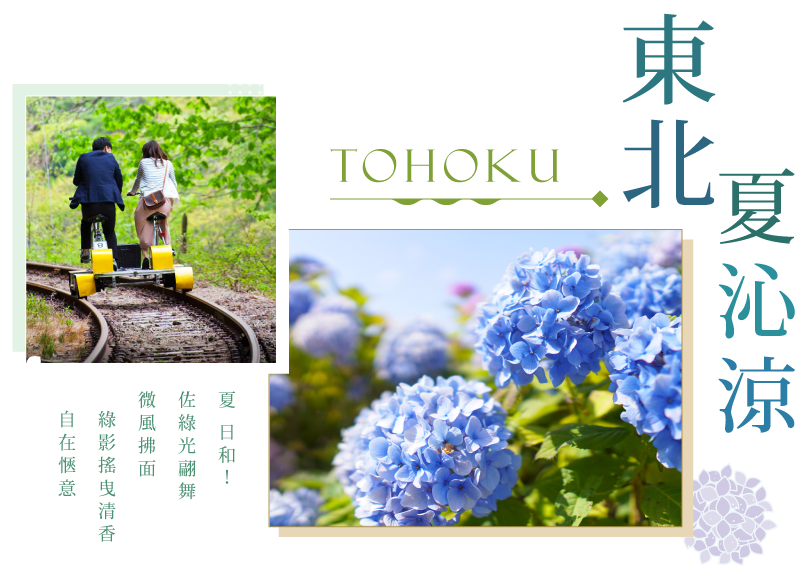 夏の風物詩:【A. 世界遺產.中尊寺 或 B. 期間限定.奧陸紫陽花 或 C. 大河劇.江刺藤原之鄉】 ~東北好好玩:【A. 地底沁涼.洞礦坑道.尾去澤礦山 或 B. 小岩井農場.牛乳冰淇淋 或 C. 盛岡八幡宮.盛岡歷史文化館】
