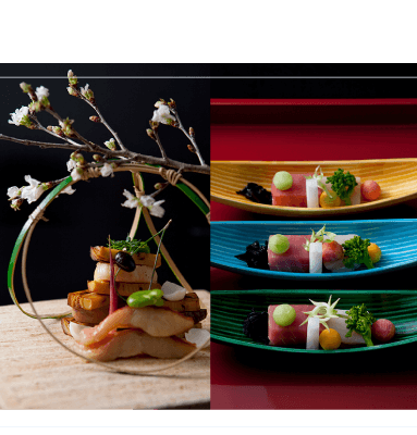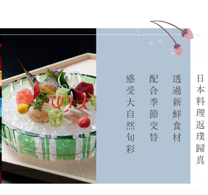 聽著風吹過山川草木聲音,看著窗外春櫻、夏綠、楓紅、雪舞;「款待的心」結合「和韻之美」,今晚,代表溫泉旅館的會席晚宴,就從第一品料理開始上演,邀請您親自細細品宴。