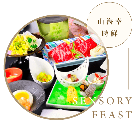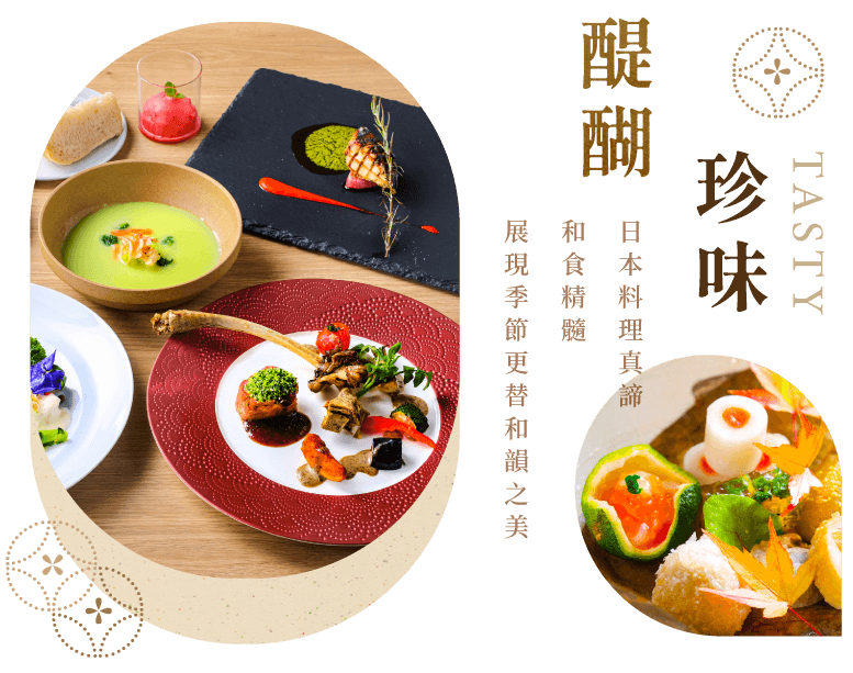 溫泉主廚創意:看著窗外四季變化;「款待的心」結合「和韻之美」,今晚,代表溫泉旅館的會席晚宴,就從第一品料理開始上演。