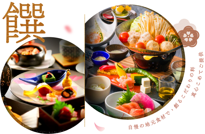 早餐: 飯店內享用早餐 午餐: 鄉土地元和式套餐 晚餐: 溫泉主廚會席