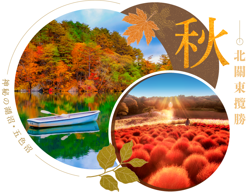 秋彩物詩:【A. 日立常陸海濱公園:超現實美景!綠轉紅萬株「 掃帚草」.波斯菊花田(掃帚草コキア9月中-10月中)或 B. 日本三大名園.偕樂園.紅葉谷(11月中下旬) ~秋景而來IG熱搜點:歷史館銀杏並木道(11月)】~紅葉100選地.袋田瀑布:四度名瀑四季彩 ~御之宿.溫泉協奏曲