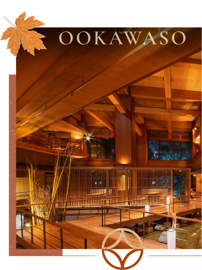 佇立在會津奧座敷的蘆之牧溪流岸。客房有溪谷絕景的和室,大浴場是源泉掛流天然溫泉最吸引人目光,直徑2公尺古檜木打造而成。清新檜木香與溪谷輕風中,彷彿在森林浴中享受天然溫泉一般。