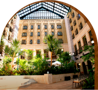 為靜謐森林環繞,環境情趣盎然,猶如迎賓館般,迎接賓客。世界級設計師J.D,融合東洋與西洋創作,大廳使用的壁面上的鏡子,柱子間接照明讓人想起京都能看見的那座面對裸露山巔挺立著的紅色鳥居牌坊。並採 用歌舞伎的衣裳上可見到的日本傳統的大膽色調,各處大量採用的格子圖案。