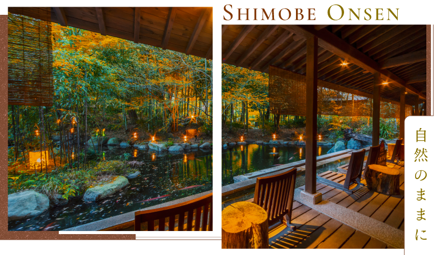 位於山梨縣石和溫泉鄉。在奢華的木造建築裡,欣賞微風輕輕拂過的樹林,聆聽晶瑩剔透的寧靜水聲;佔地5000坪的庭園內,更有從全日本收集的銘石、巨石等,現代造園技術建築的日本庭園,隨處都可感受日本傳統美學,沉浸大自然四季旬彩撫慰您的心。