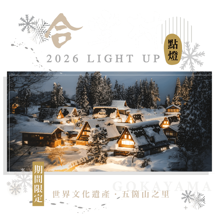 1. 『五箇山合掌之里』點燈時間17:00~20:00(需有入村通行許可證方能參加五箇山合掌造點燈活動)。 2. 心中疑問…「富山縣五箇山點燈與岐阜縣白川鄉點燈不一樣嗎」?答案:不一樣。是不同的兩個地方兩個縣;但都是以合掌屋聚落點燈LIGHT UP模式進行。白川鄉點燈是大型點燈活動,五箇山多了一份安寧、秘境感覺,因為團體少。兩處於1995年一起獲得世界文化遺產UNESCO認證,也都是豪雪地帶。 3. 秘境『五箇山』合掌之里點燈Light up;如逢不可抗力因素無法舉辨時,並無費用可退,貴賓們也不能用此因素要求無條件退團等(依旅遊合約規定辦理),請貴賓務必先行了解,