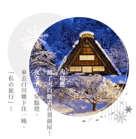 『點燈3』高山飛驒の里.冬幻燈:翻開一頁頁高山物語,純白雪花在夜空輕輕飄舞。