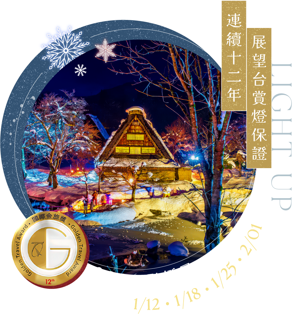 冬季最亮的一盞燈-《2026白川鄉點燈Light Up》;晴日旅遊『白川鄉點燈』於2024年榮獲「金旅獎」。本商品品質嚴選美學與溫泉名宿,白川鄉最多獨家房源,來一趟期待已久的感官品味之旅吧!