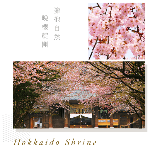 奉明治天皇詔令所建北海道神宮,為北海道守護神開拓之神祭祀處;每年花季時,表參道華麗盛開的上千本櫻花(約4月下旬~5月中旬),春風吹拂下櫻花瓣飄舞,有如「花雨飛飄、花吹雪」繽紛浪漫。