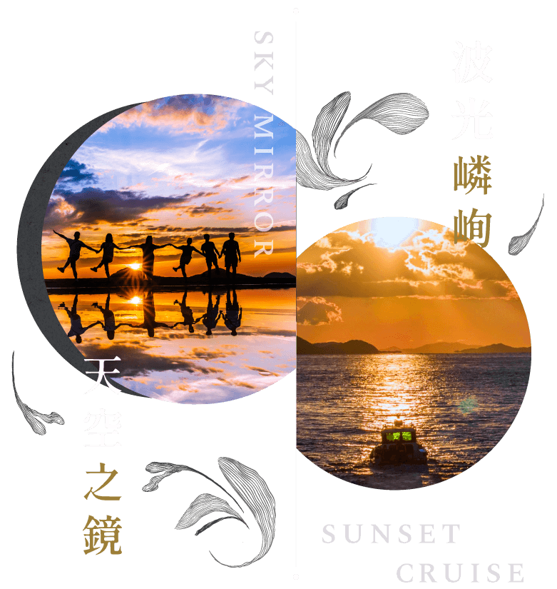 晨起:A.飯店內享受足湯盡賞讚岐平原美景 B.金刀比羅宮小試身手,400登階參拜大名鼎鼎香川第一神社➠午後前往日本天空之鏡,精準計算潮汐,由專業攝影師為您留下天空下的美好回憶➠琴平花壇