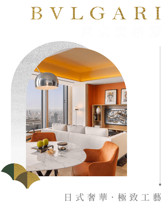 東京寶格麗:東京新地標,義式華麗風格與日式低調優雅完美交織,營造沉穩雅致的氛圍,提供頂級舒適與尊榮體驗。
