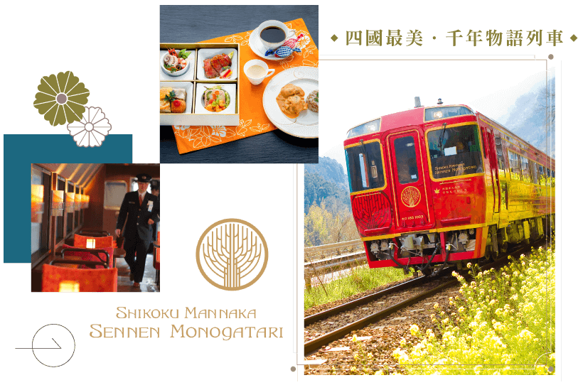 - 【四國真中千年物語 天空之鄉紀行】,預約時間為琴平駅10:48-坪尻駅停留10分鐘-12:34大步危,行程中供應精緻點心,食材皆由主廚挑選,恕無法對應任何變動特殊餐食。