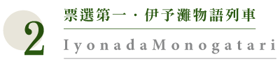 2022年春列車全新三節車廂服務。「伊予灘物語」,運行於予讃線的松山站到伊予大洲站及八幡浜站之間。以「茜色(夕陽色彩)」、「金黃色(太陽與橘子顏色)、私人包廂(陽華之章)」3節車廂構成,裡到外設計都別緻典雅,花紋布座椅與溫暖的木質地板有著居家般愜意氛圍,暖色系列車,眺望窗外山海,車裡車外皆美景
