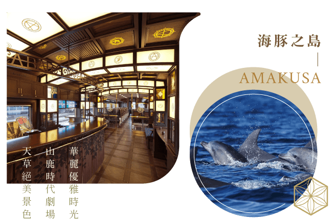以「16世紀流傳到天草的南蠻文化」為主題設計的浪漫特快列車。內部裝飾使用色調穩重大方的木材和彩繪玻璃,如同電影場景一般。 營造出美妙回憶的難忘之旅。沿著御輿来海岸欣賞天草與三角海岸線風景。點一杯調酒享受一場大人味的鐵道旅行。