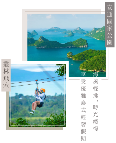 自由二選一 A.在天空與樹梢之間.叢林飛索 B.香氛與指尖魔法的極致,酒店內泰式精油按摩